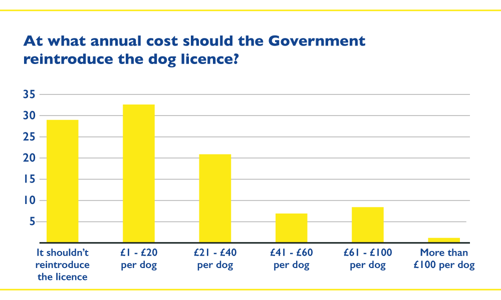 - 33% saying they were willing to pay £1 – £20 per dog per year if the licences were reintroduced, with 21% feeling comfortable with £21 – £40.